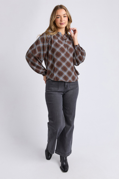 Make a statement with the Edison Check Top, a versatile wardrobe essential that combines effortless charm with modern detailing. Showcasing an exclusive Foxwood check print, this top features an elegant button-neck finish and elastic cuff puff sleeves that create a soft, feminine silhouette.